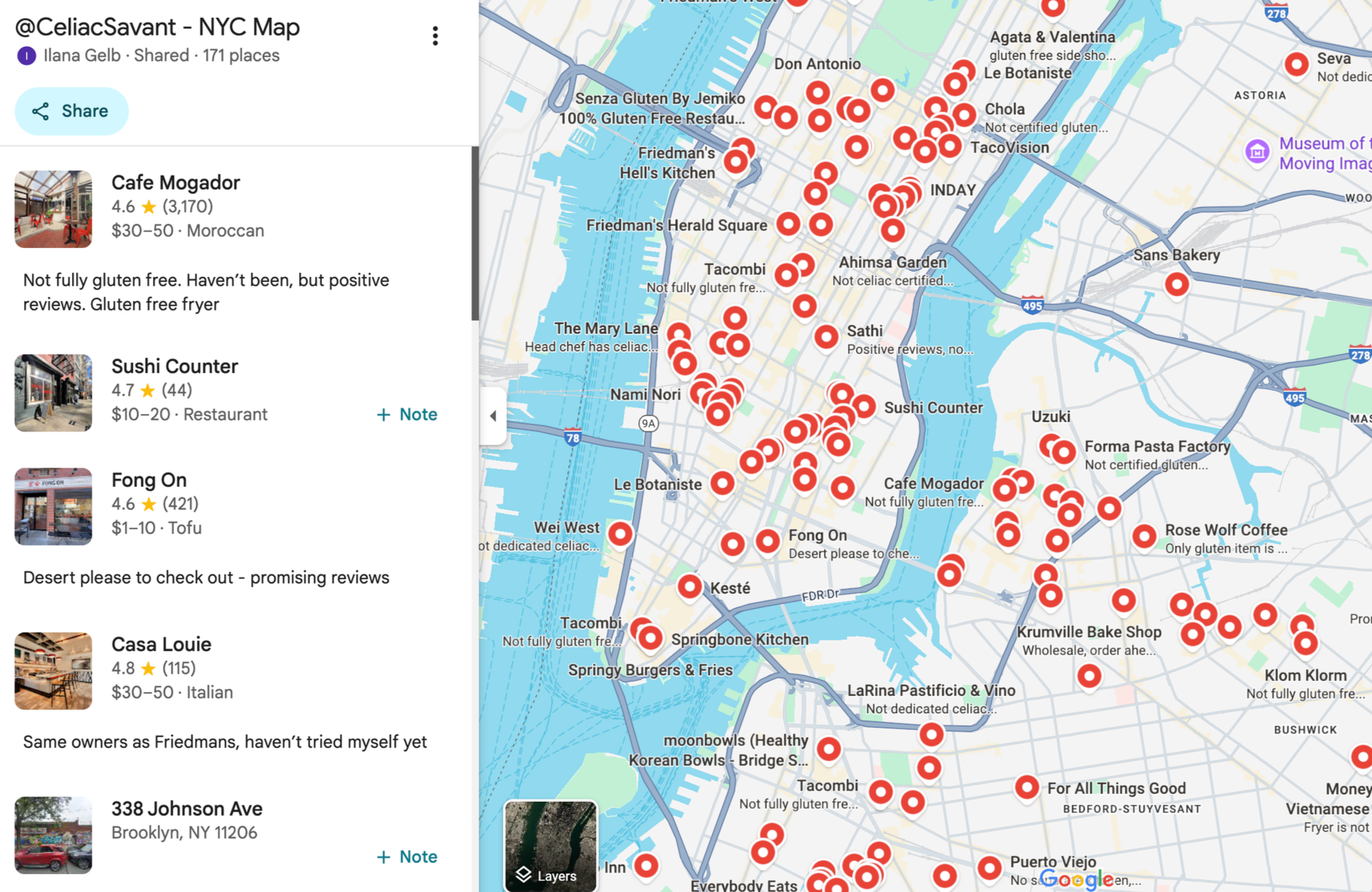 NYC Celiac Safe Eats Map